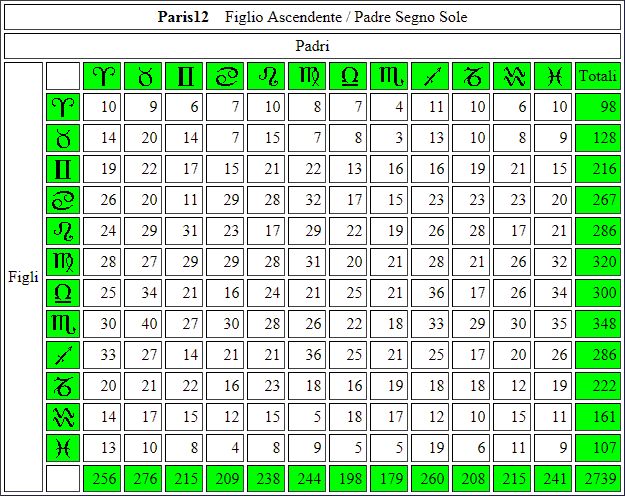 La probabilità di avere una moglie con il sole in quadratura con il nostro sono quindi approssimativamente 24 su 360, ossia ogni 360 coppie ne dovremmo trovare 24 con i soli in quadratura.